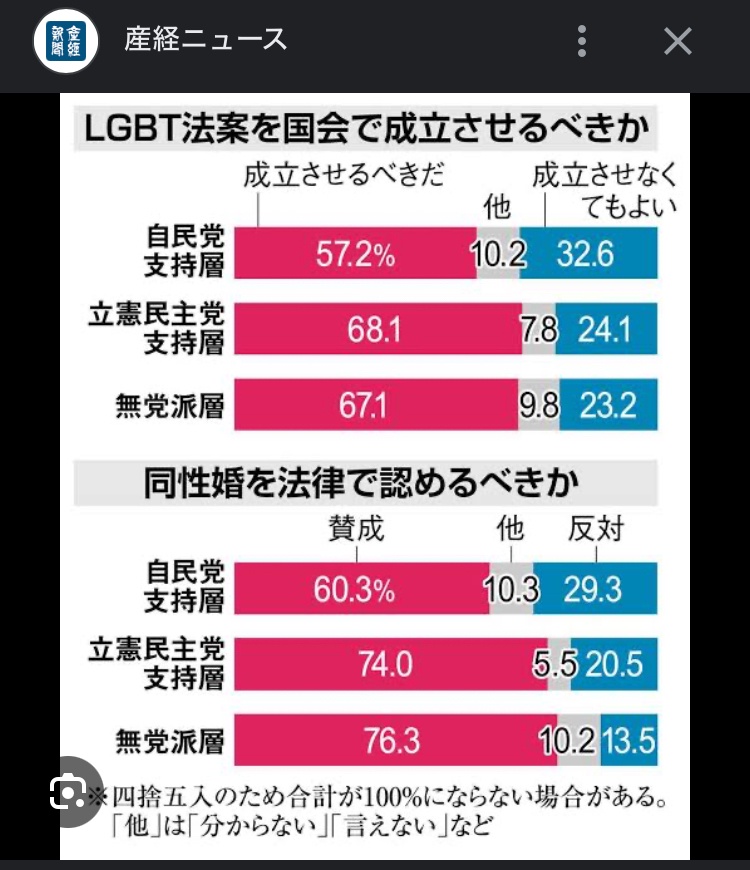 弱.男「ポ リコレやLGBTは終わる!」→日本、「LGBT差別を撤廃すべき」「同性婚認めるべき」「トランス女子トイレOK」が過去最多