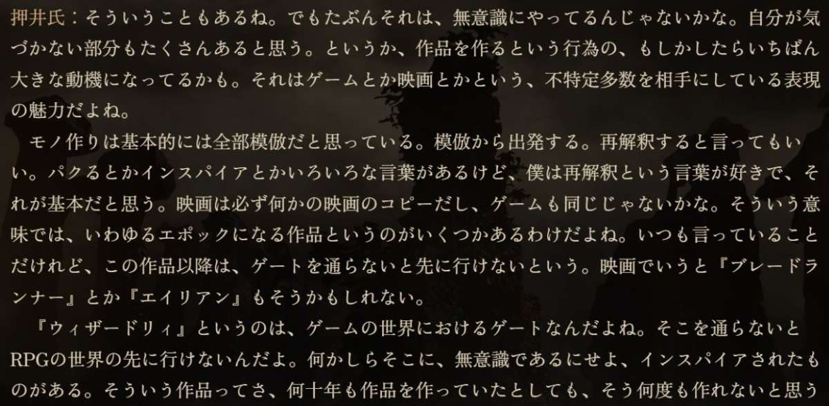 押井守「モノ作りは基本的には全部パクリから出発する。ゲームも映画も必ず何かのコピーだよ。」…これ正論やろ