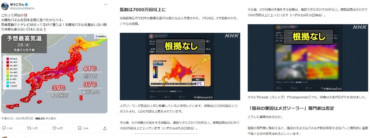 「メガソーラーが猛暑や大雨被害に影響?」根拠ない情報が拡散