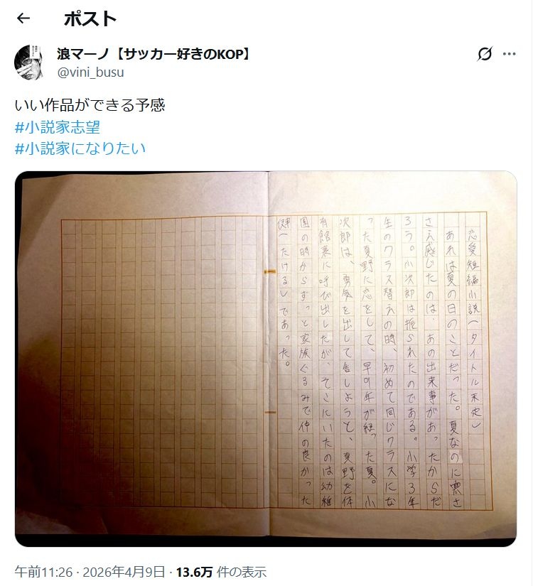 そこら辺の中学生が書いたような小説やな - 31 : 2026/04/10(金) 14:20:47.70 ID:tmaeyZC60