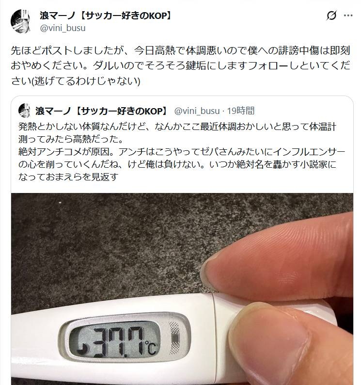 - 体調が悪いため鍵垢に移行する模様(逃げてる訳ではない)