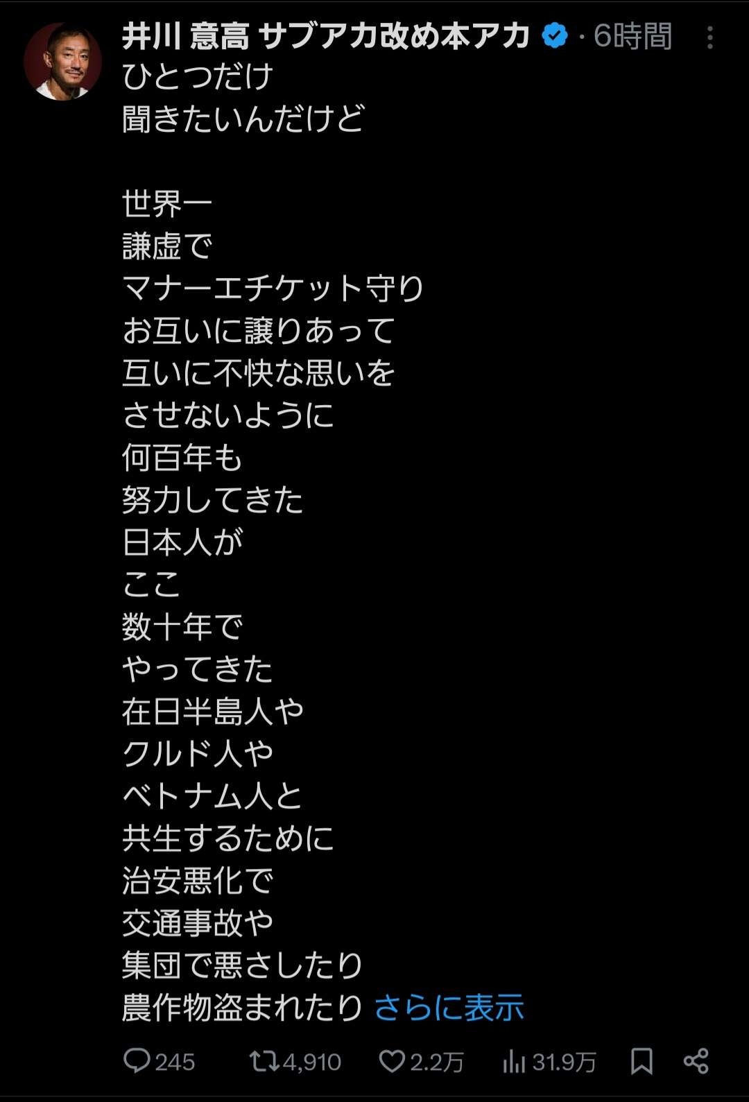 東大法学部卒の井川意高さんブチギレ「共生を主張してるのって半島人ばかりだろ!」