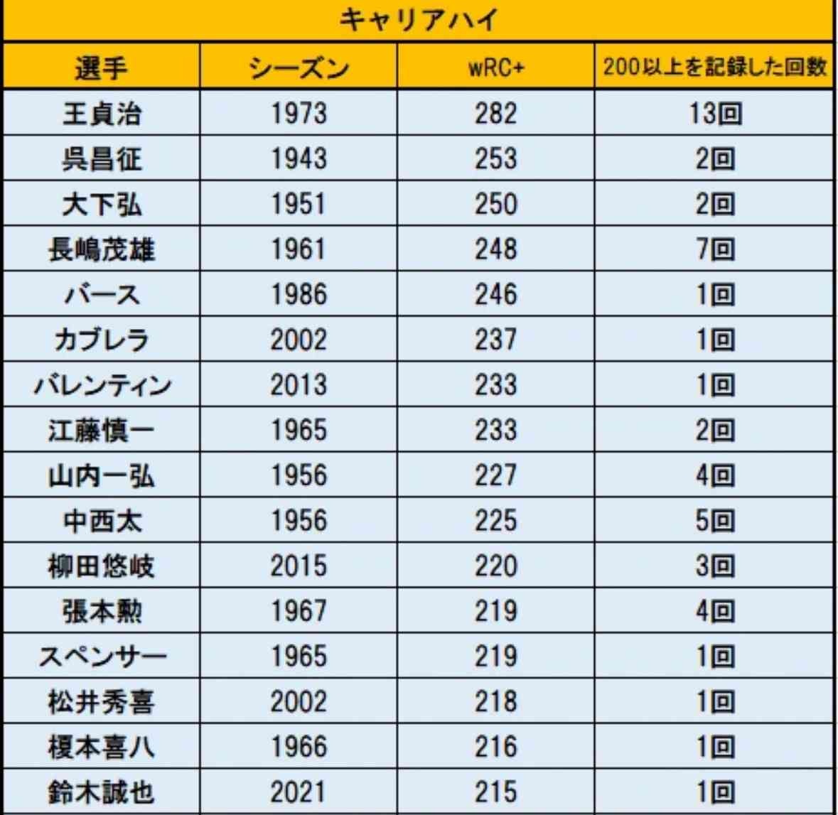 松井や鈴木はキャリア最高期間をメジャーで過ごしてるから低めに出てるだけ