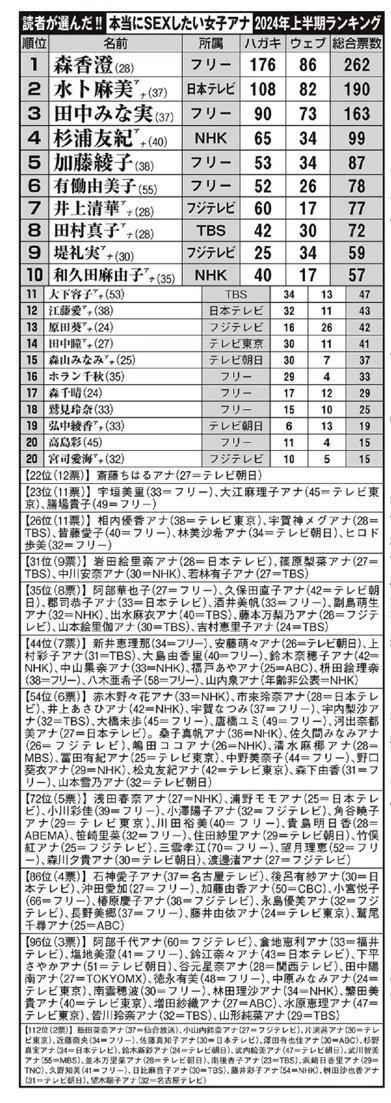 森香澄(28)、本当にセクロスしたい女子アナランキング1位になるwww