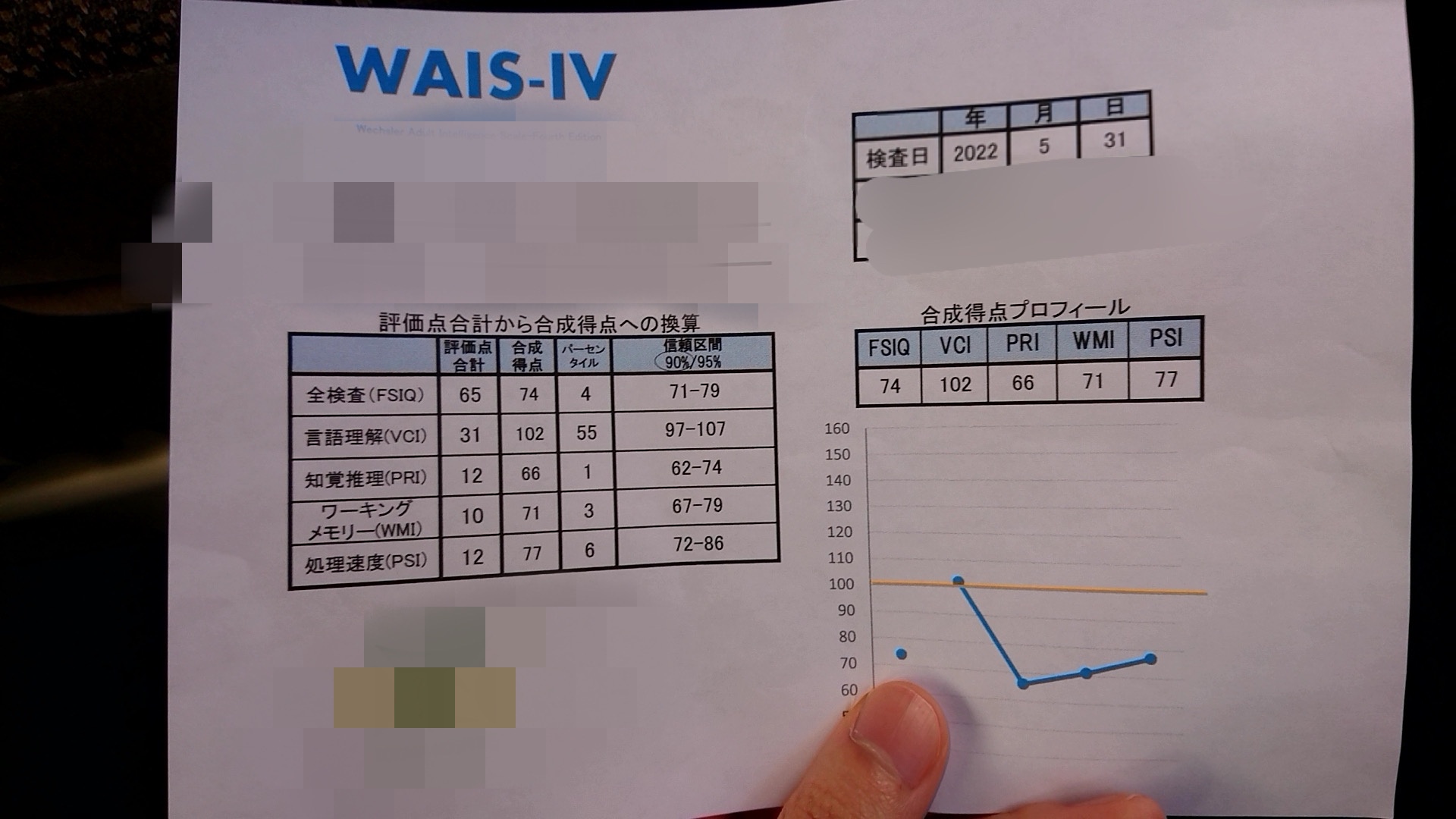 精神等級二級で waisの結果はこんな感じ