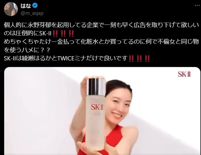 永野芽郁と同じ商品使ったら不倫女と思われる 永野採用企業にクレーム殺到