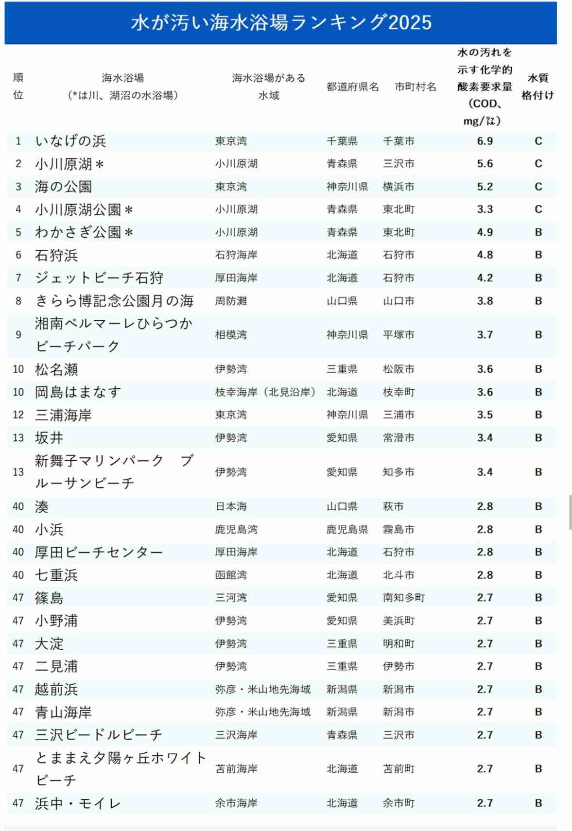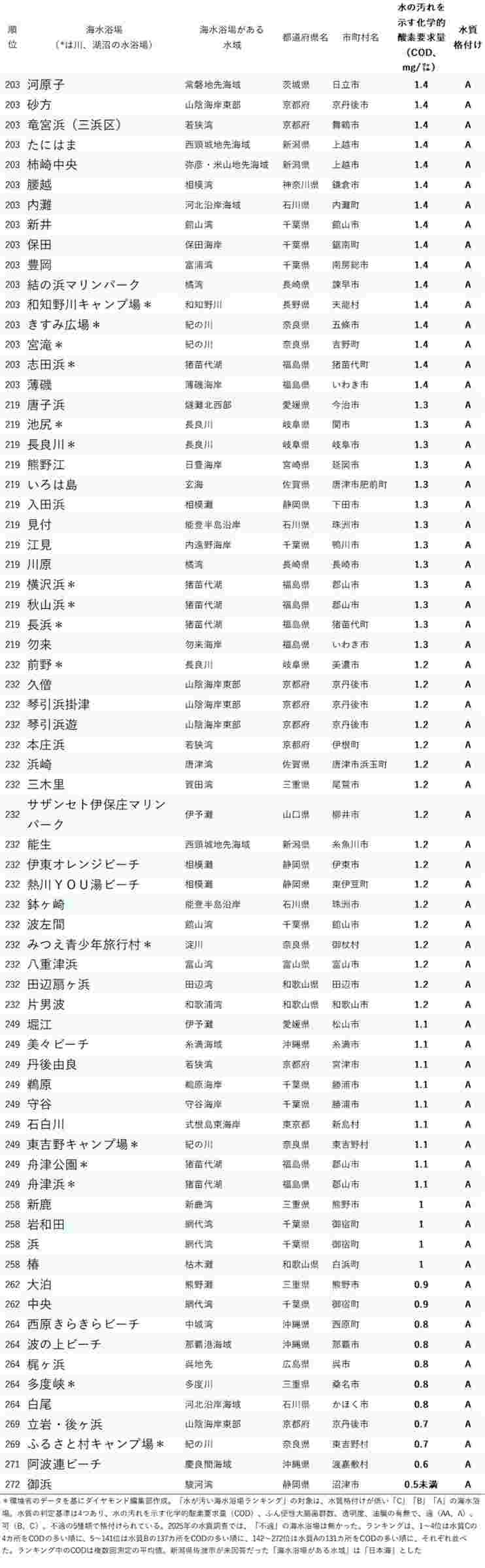 - 逆にNo.1は大体沖縄か静岡の海水浴場になるよな