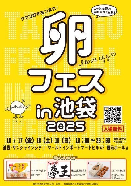 「卵フェスin池袋2025」チケット第二次先行販売スタート 日本最大級のたまごかけごはん食べ放題イベント(オーヴォ) - Yahoo!ニュース一般社団法人日本たまごかけごはん研究所(東京)は、10月17日(金)~19日(日)まで、東京・池袋の池袋サンシャインシティで「卵フェスin池袋2025」を開催する。同イベントの食べ放題チケッnews.yahoo.co.jp - 3 : 2025/09/01(月) 17:07:29.17 ID:0rSmGPSM0