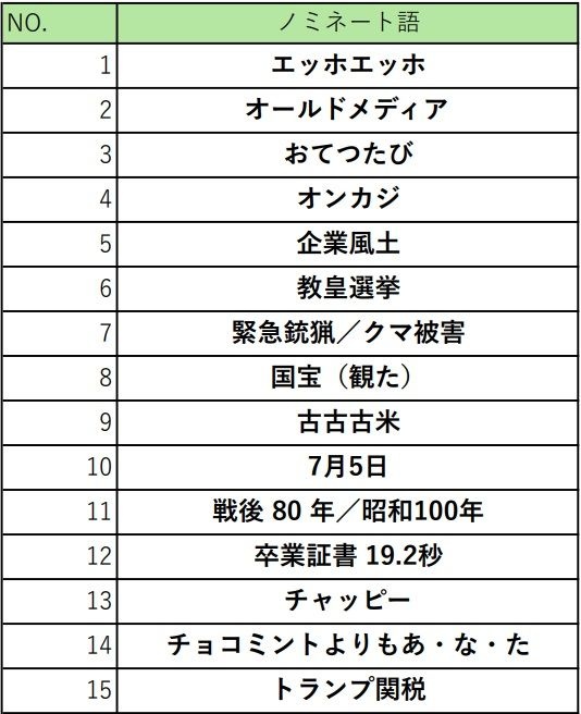 - 時事的なワードは意地でも選出せずエンタメばっか
