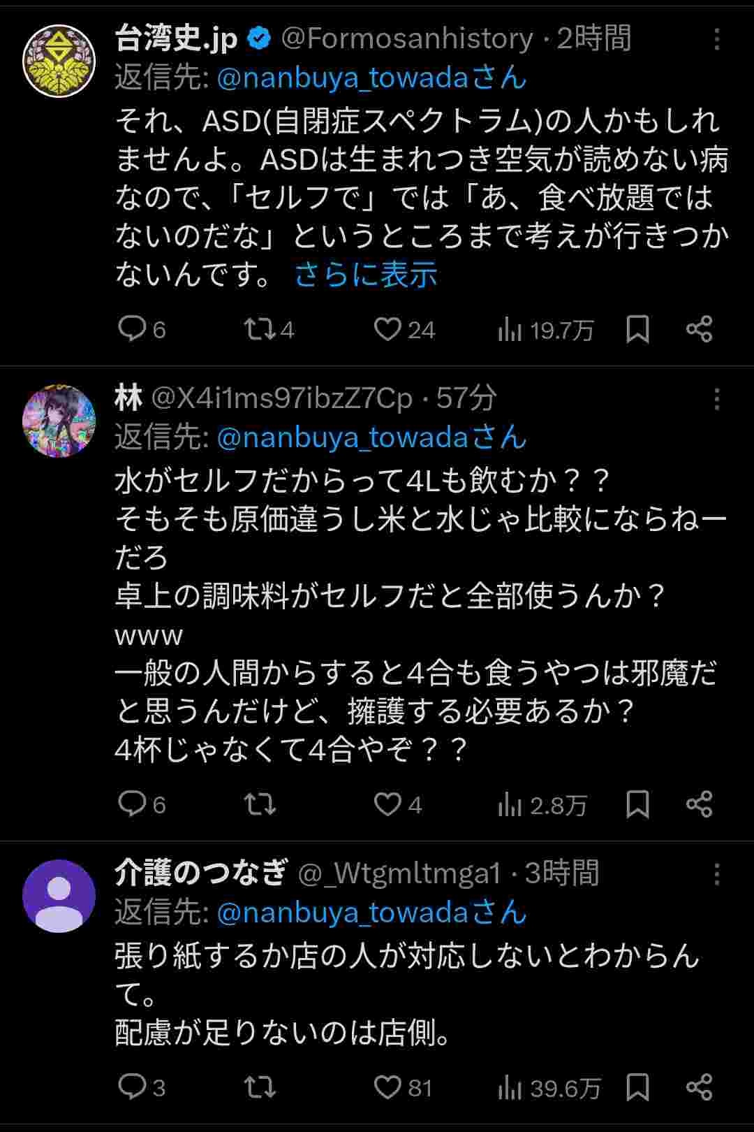 - これ広められて注意書き無くてもセルフは一杯だけとかおかわり一回だけを常識にされたら困る