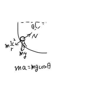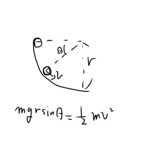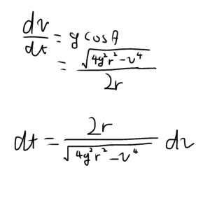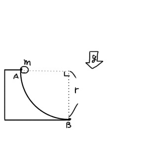 質量mの物体が円弧状のレールに沿ってAからBまでに移動するのにかかる時間を計算します。