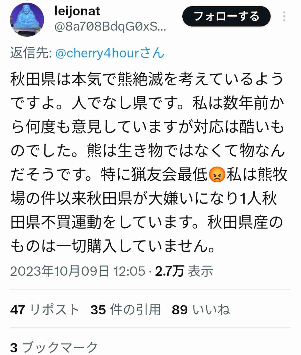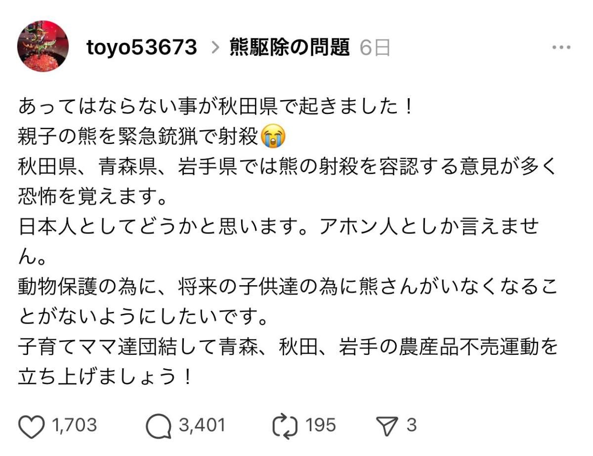 熊擁護派「熊を56す東北を許すな!みんなで不買運動やるぞ!!!」
