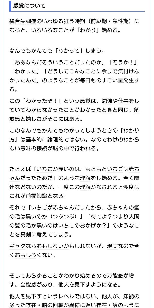 統合失調症の初期症状、「色んなことが分かり始める」だったwwwww
