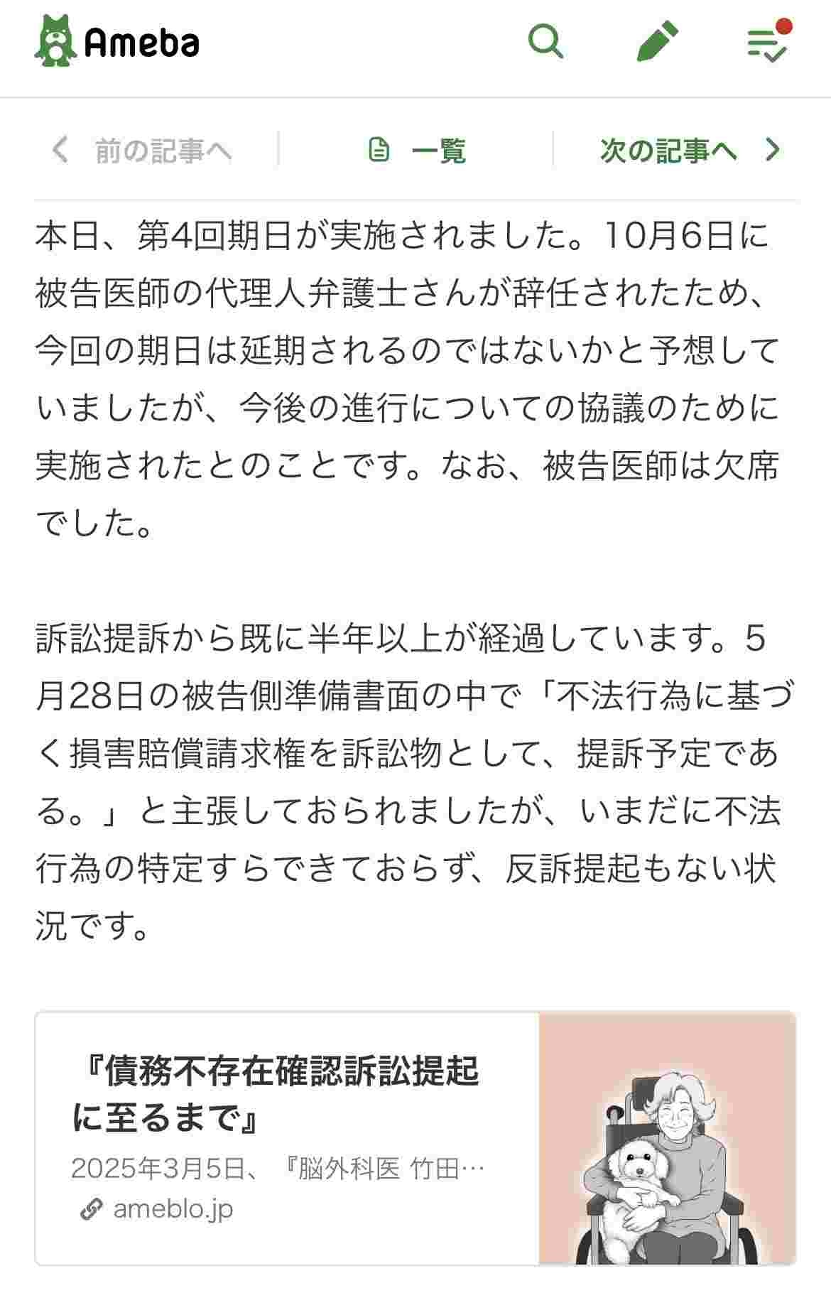 脳外科医竹田くんのモデル医師、代理人弁護士辞任状態で竹田くんまで裁判を欠席してしまう