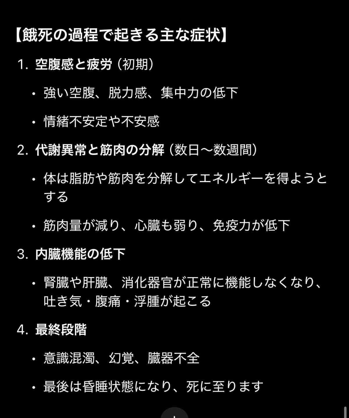 - 餓死ってめっちゃ苦しいんじゃなかった?