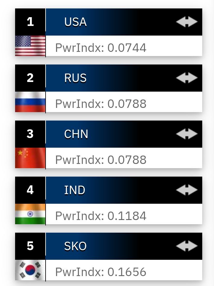 中国2位、日本8位2025 Military Strength RankingRanking the nations of the world based on current available firepower.www.globalfirepower.com - 2 : 2025/07/13(日) 14:44:15.82 ID:RfPMFyjJ0