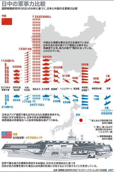 自衛隊と人民解放軍の戦力の比較