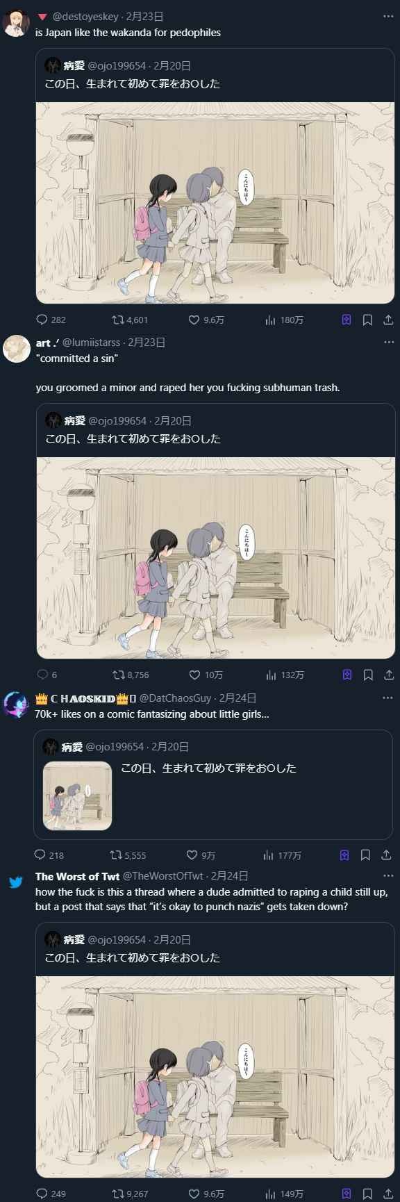 - 特に日本=小児性愛者大国という印象は完全に根付いてしまった模様