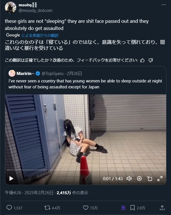 日本のツイフェミも乗っかって日本は性犯罪大国やと喧伝しとるんよな - 8 : 2025/03/02(日) 15:52:27.967 ID:GQqtcfGfm