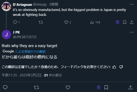 日本がバカにされとるんやぞ - 28 : 2025/03/02(日) 15:56:00.580 ID:s6jjsIQoz