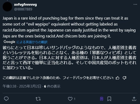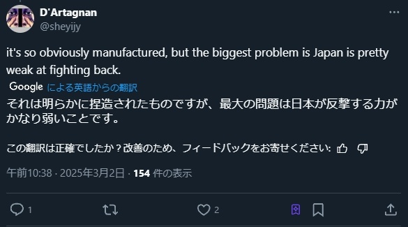 まるで日本と日本の右翼は受け入れてるような風潮はNG - 20 : 2025/03/02(日) 15:55:16.628 ID:fY.rrPjN6