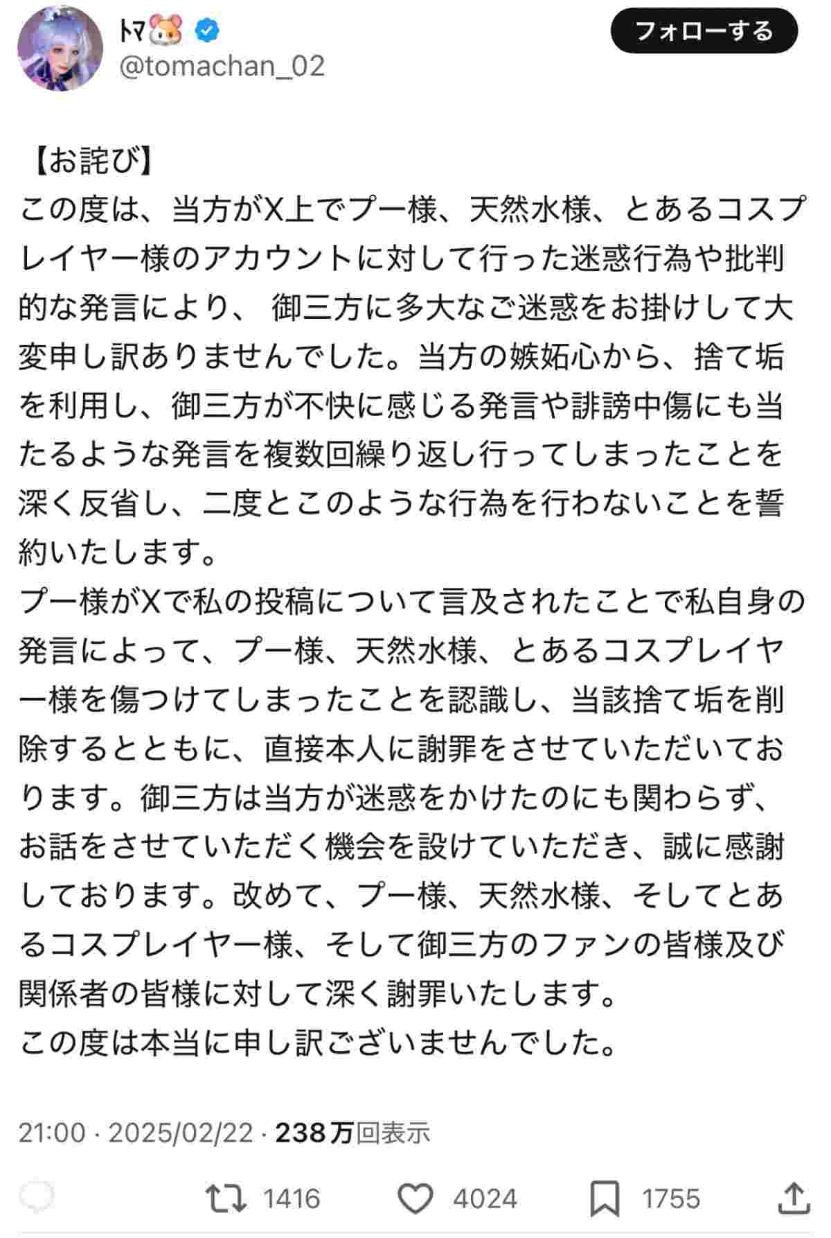 裏垢でコスプレイヤー達に誹謗中傷してたコスプレイヤー、謝罪で無事解決!!