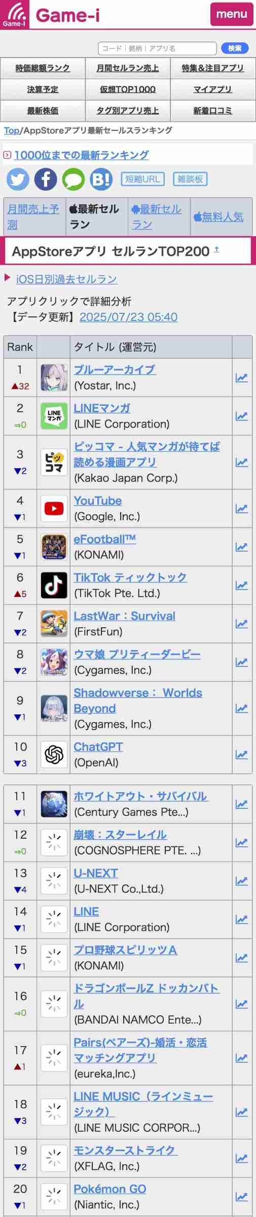ウマ娘も更新してるのに8位なんやな