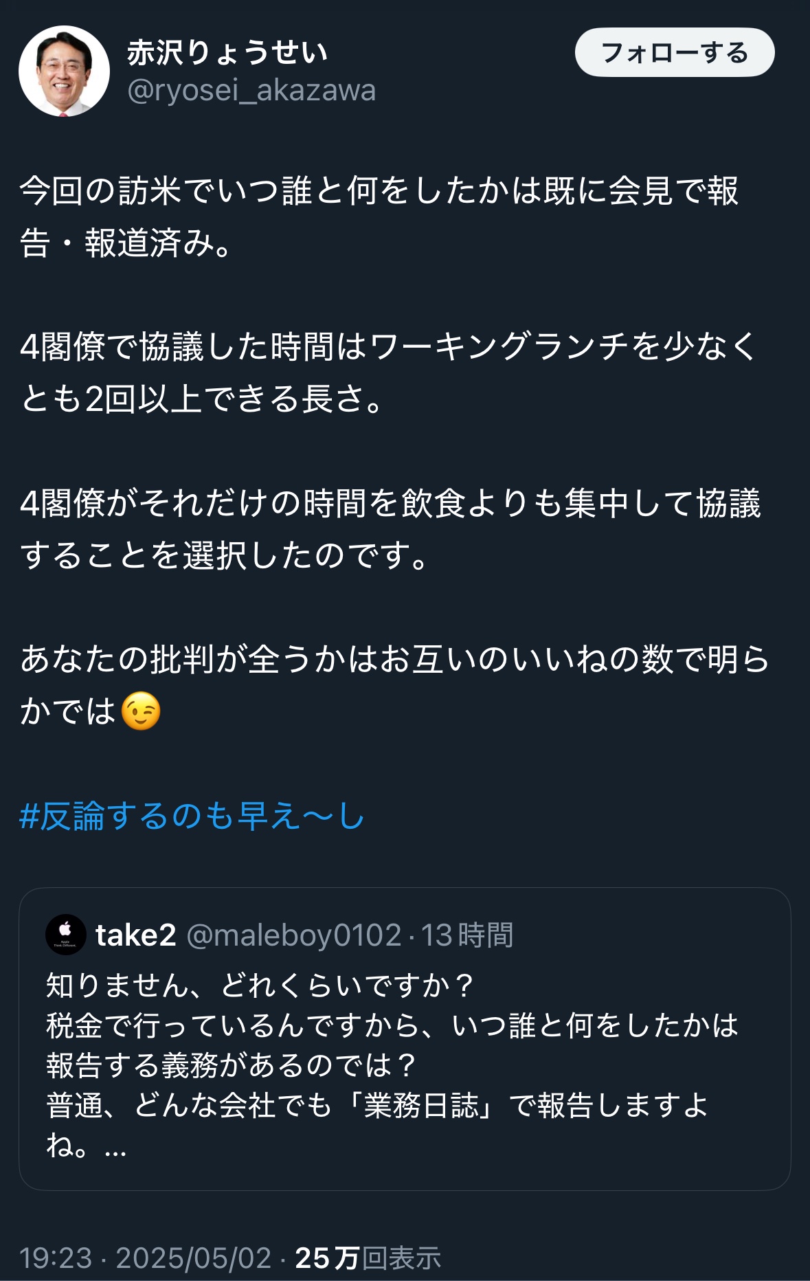 午後7:12 2025年5月2日赤沢りょうせい
