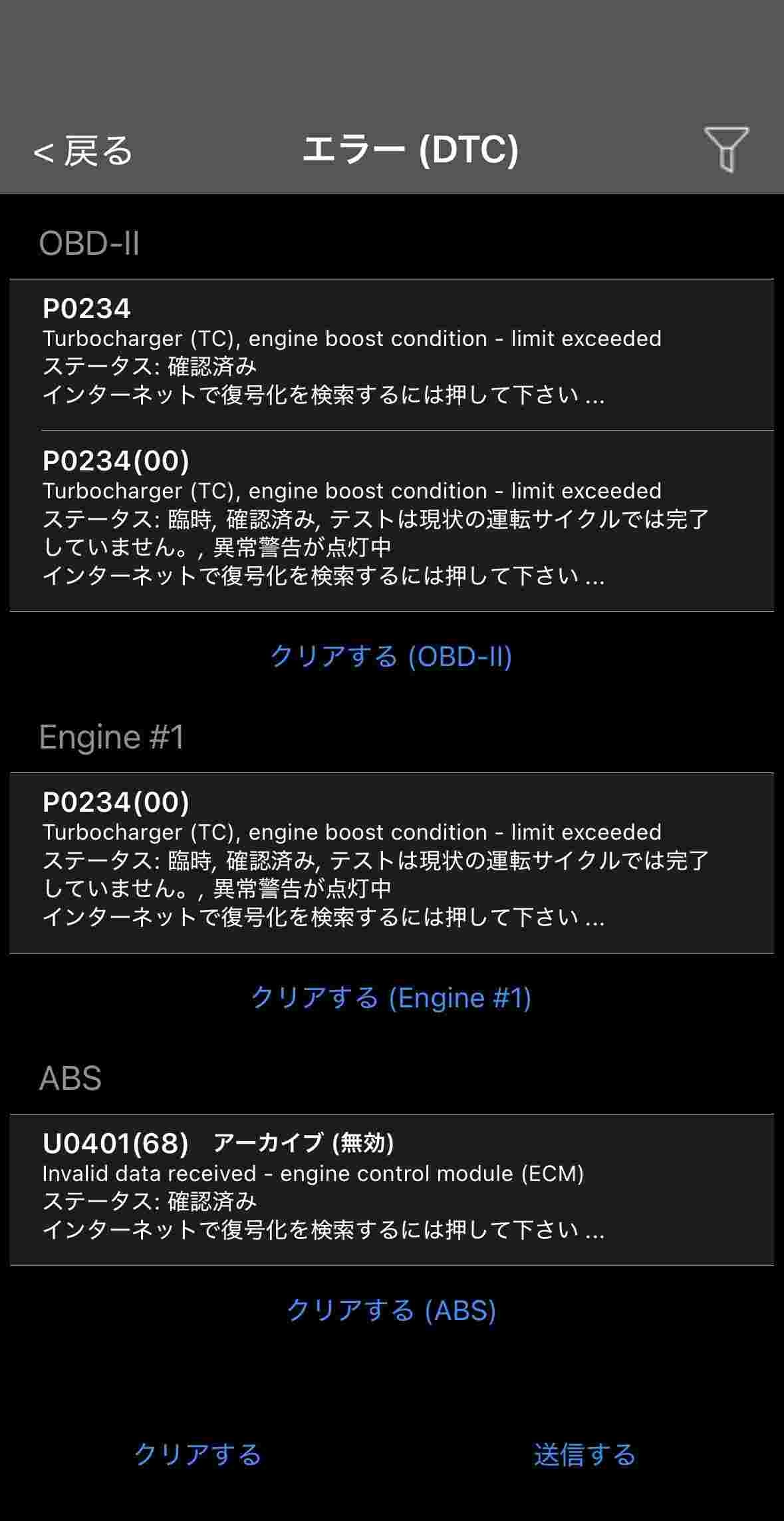 とりあえず不具合出て警告灯付いて読込むとこう出るんですけど