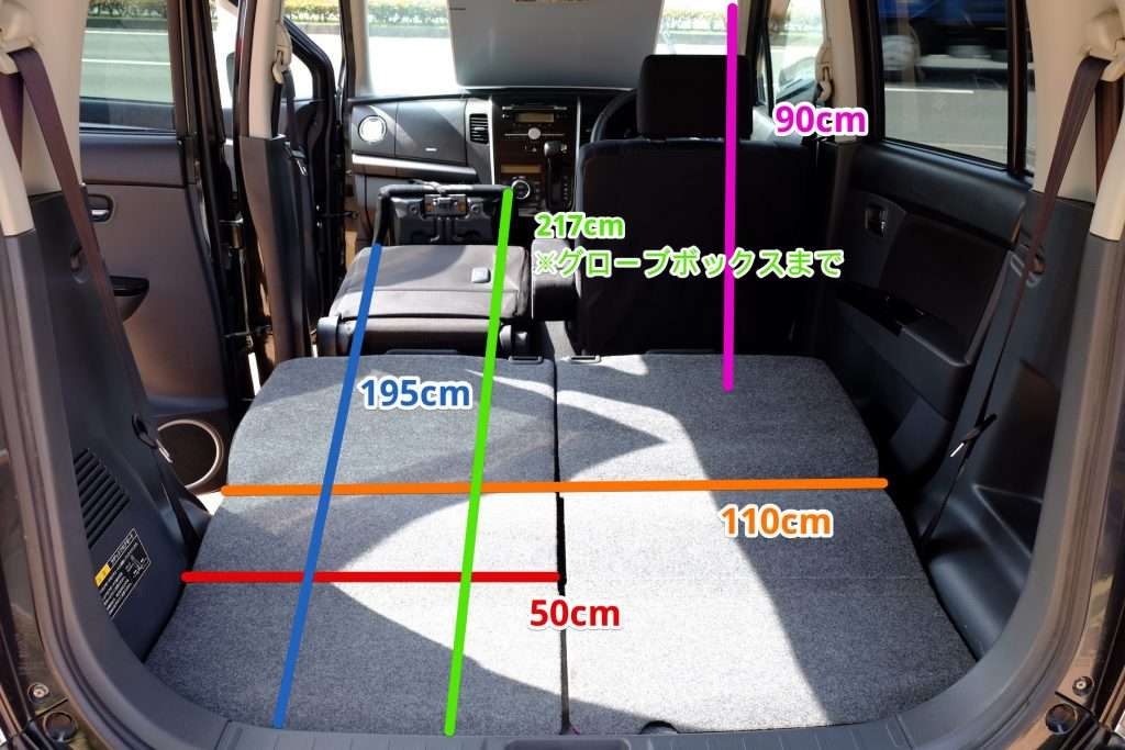 ワゴンRでも195cmのフラットできるから大抵の長尺も乗るし車中泊もできる
