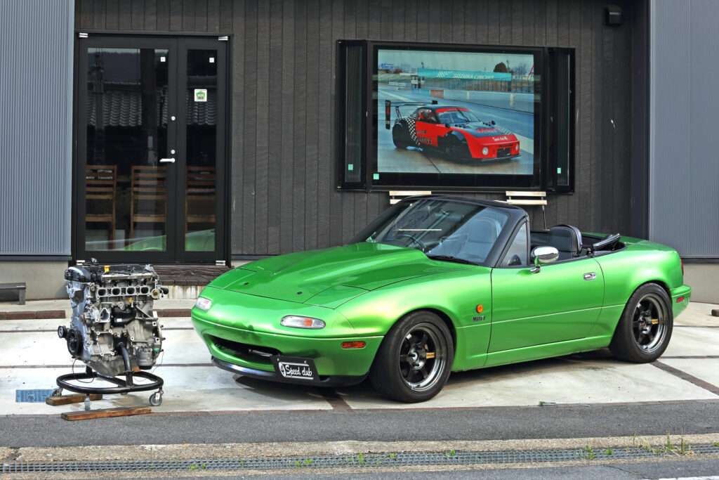 軽量なNA型ロードスターに、NC型の2.0Lエンジンを搭載する。一見すると大胆すぎるこの発想は、実は極めて合理的だった。アルミブロック化による軽量化と現代的なパワー特性を両立し、従来のチューニングと