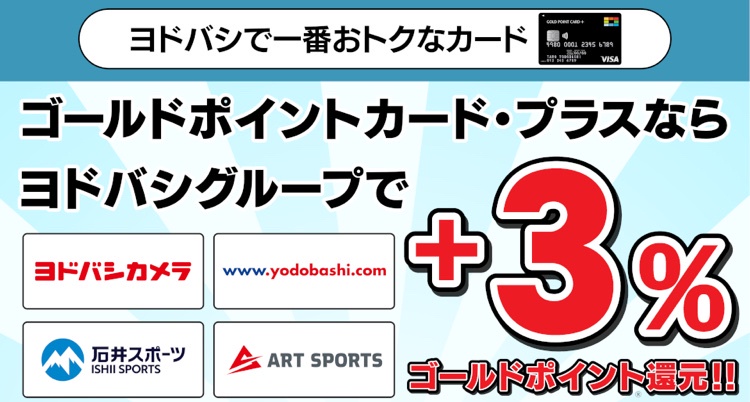 グループ各店(ヨドバシカメラ、ヨドバシ.com、石井スポーツ、アートスポーツ)でクレジット決済した利用額に対し、3%分のゴールドポイン.トを還元するサービス。現金購入時と同率のポイン.トに加えて3%分(クレジット決済ポイン.ト1%+特別ポイン.ト2%)のポイン.トが上乗せされるため、最大13%のポイン.ト還元が受けられる。