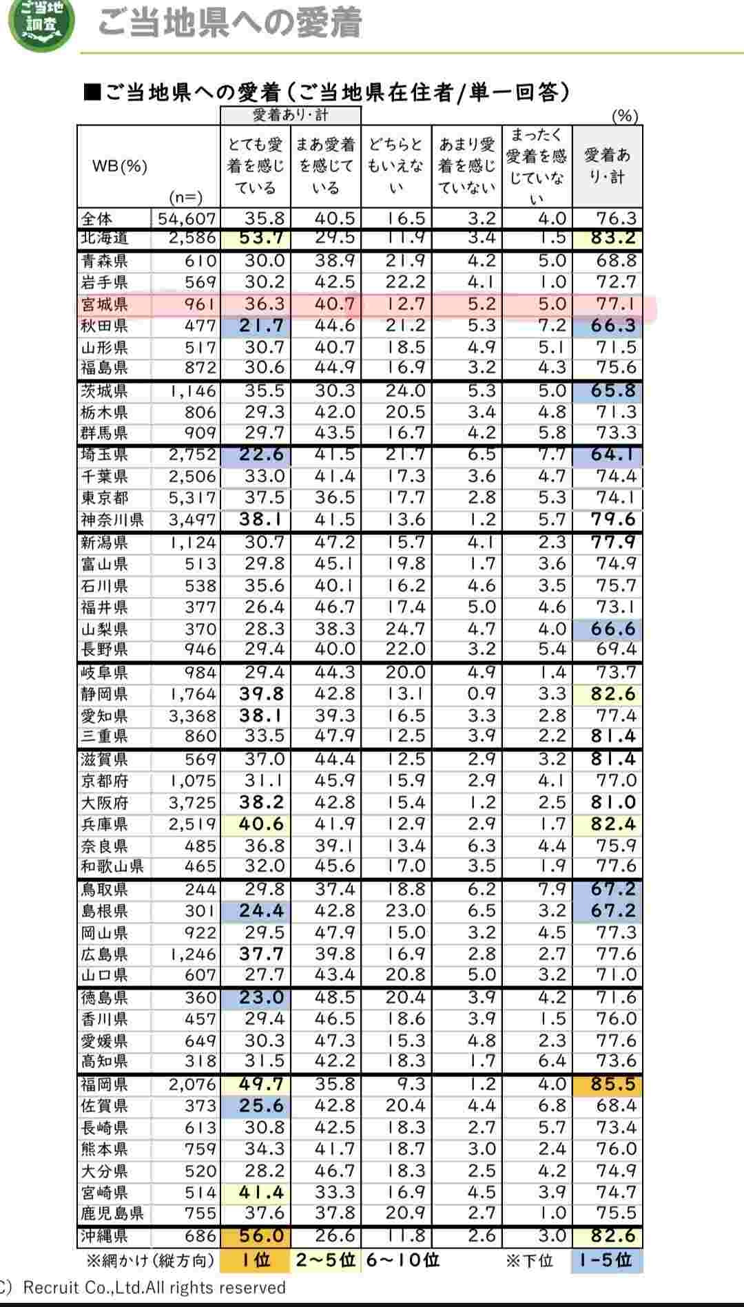都道府県、地元愛強いぞランキングがこちらwww
