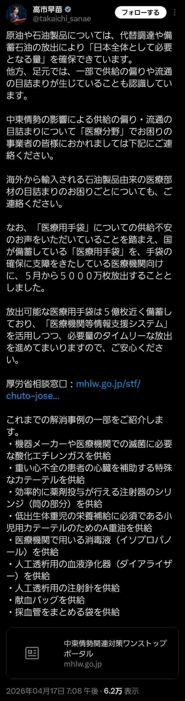高市、日課のXをポスト「必要な量はあるの😡とにかく目詰まりが悪い!目詰まりの相談窓口はこちら!」