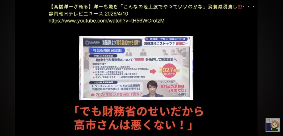 www.youtube.com/watch?v=qyZmXJtJgB0高橋洋一「高市さんは消費税したいのに財務省の妨害に遭って消費減税できない」