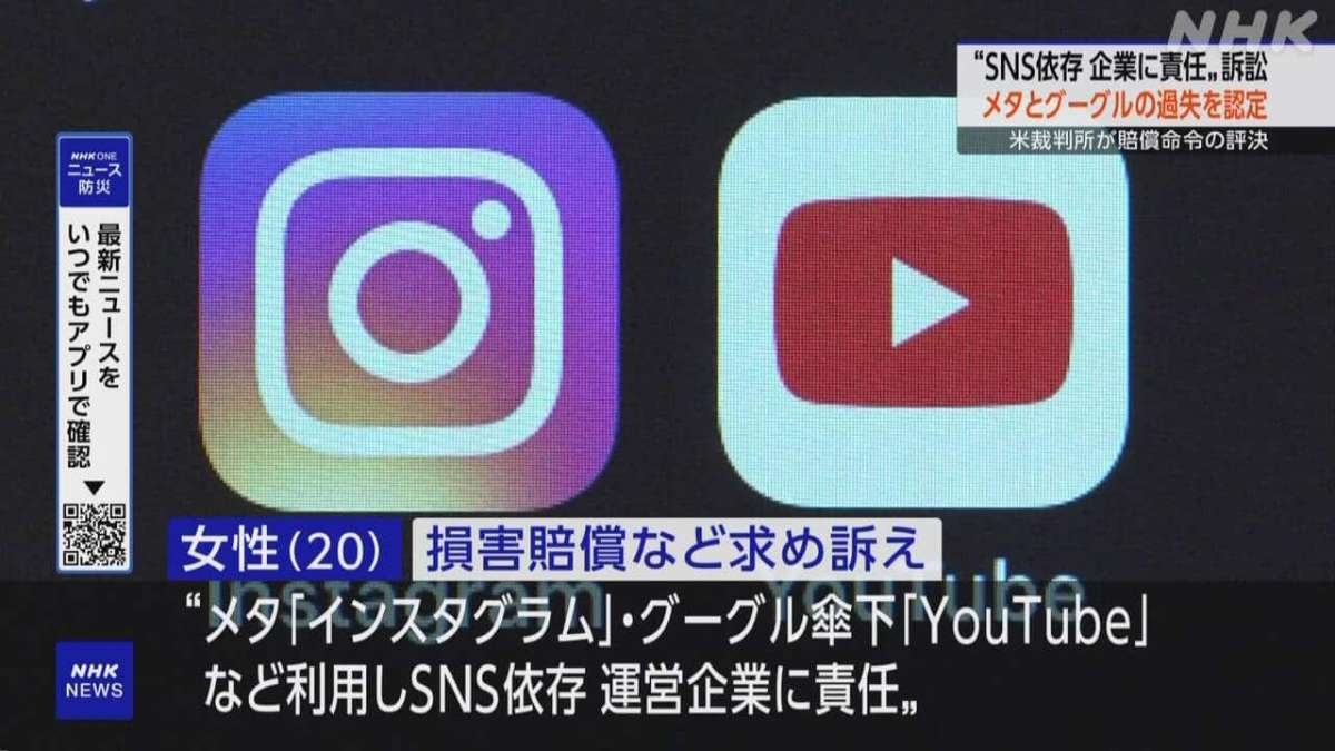 未成年SNS依存訴訟 メタとグーグルに約9億5000万円賠償命じる