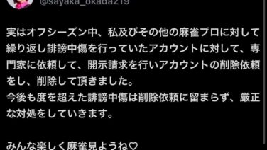 エッヂ 岡田紗佳、お気持ち表明「私に対して誹謗中傷を行っていたアカウントに対して開示請求を行い、アカウントを削除していただきました」www