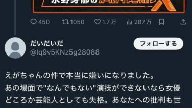 嫌儲 広瀬アリス「人を何日も叩くくらいなら自分の人生に全集中した方が幸せ」ネット叩きに「やめな」