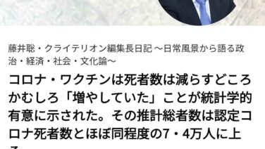 なんG 藤井(聡)「コロナワクチンは毒。ワクチンのせいで死者が増えている」