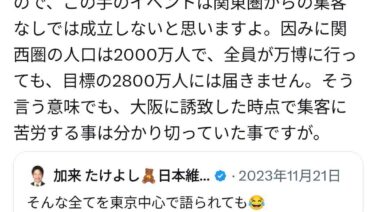 嫌儲 去年の論破王米山「関西人が全員万博見に行っても2000万人です、このイベントは成立しません。左様なら」