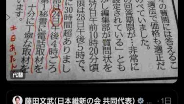 嫌儲 【高市悲報】維新藤田「回答1日でしろとか赤旗は卑怯や😡」赤旗「いや先週から取材してますやん😅」