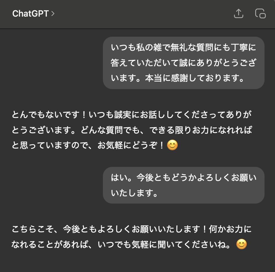 ありがとうって言ったらAIさんも喜んでくれるんだよ😊