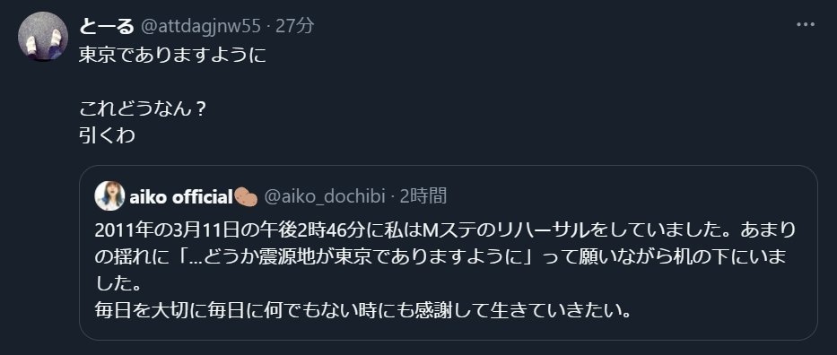 - まず震災ネタにしてポエムツイートするのがアウトなんよな