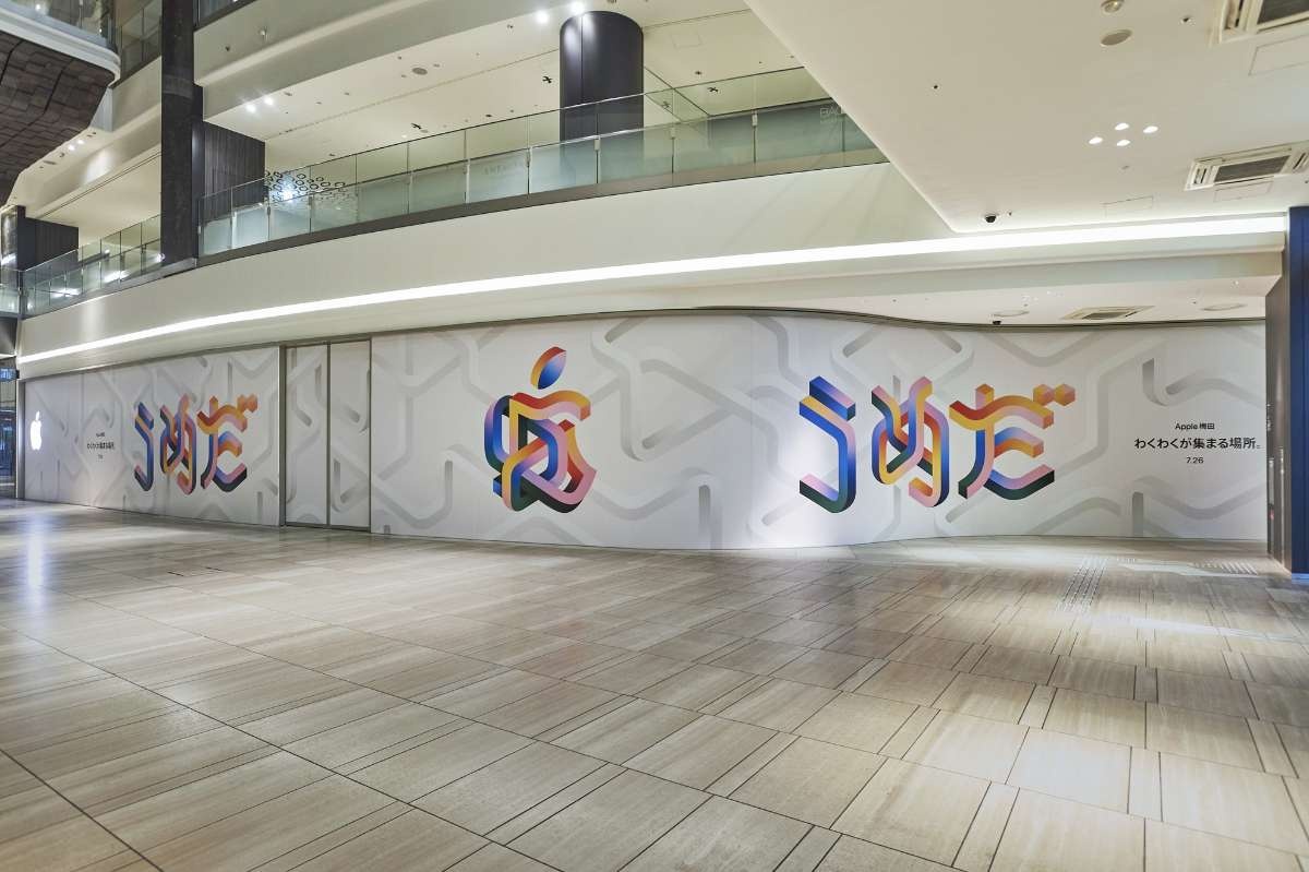 現地ではすでに工事が始まっており、「Apple 梅田 わくわくが集まる場所。7.26」の文字や、同社のロゴと“うめだ”の文字が描かれた独自の意匠が描かれた仮囲いも登場している。同社のWebサイトでは、この意匠の壁紙が配布されている。