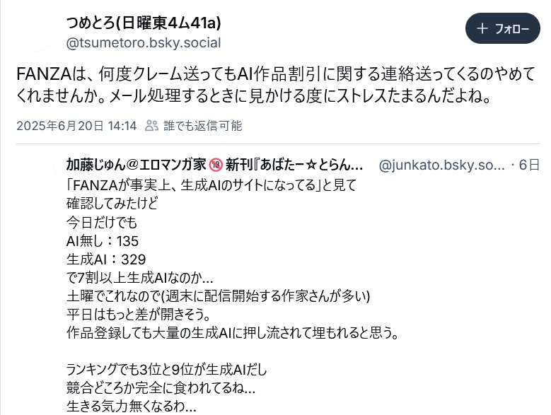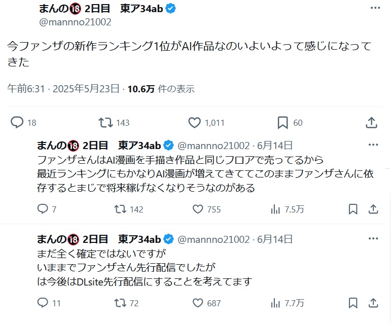 FANZAのAI同人「20万本も売れました!ランキングもAIだらけですw」