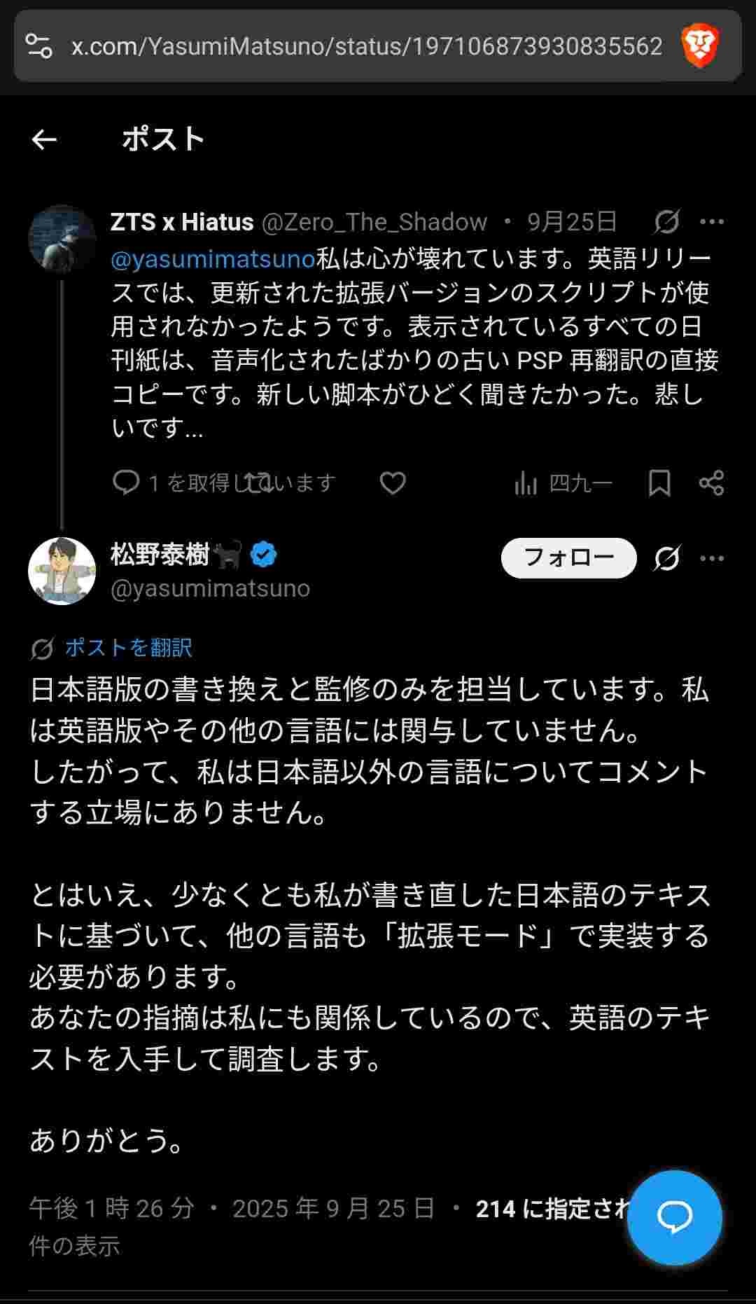 FFタクティクス松野「海外版も自分が書き直したテキストにするようにするべき。調査します」👈ーーー😲