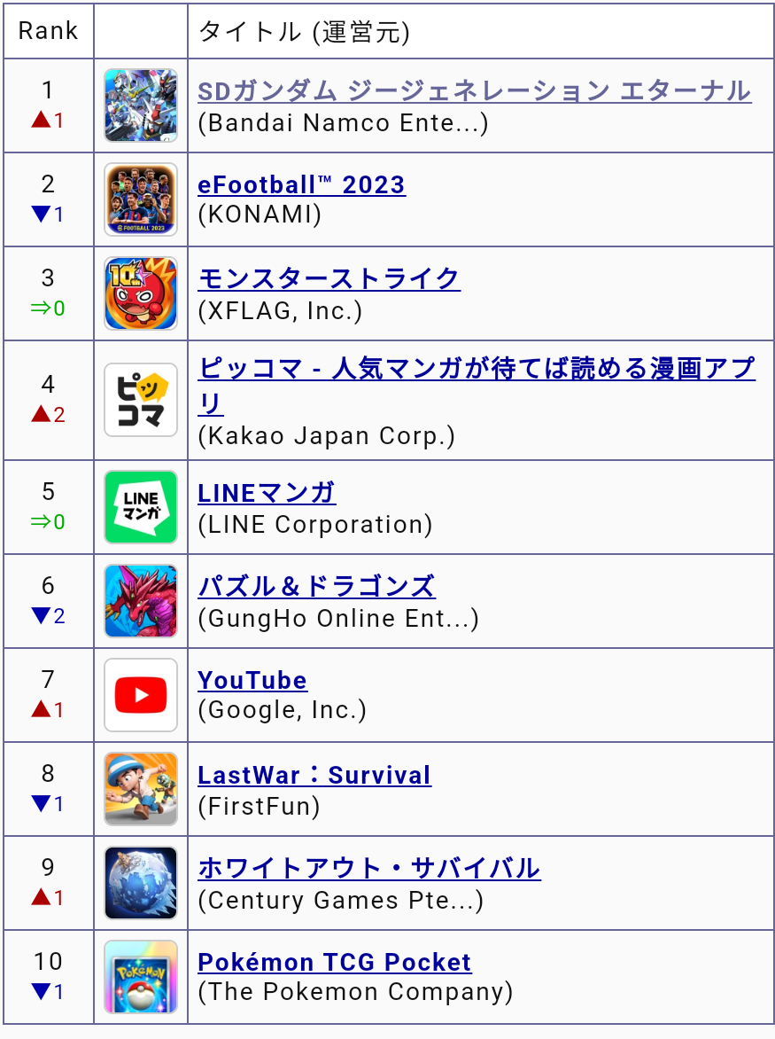Gジェネエターナル、再びセルラン1位に DLも200万突破まだ始めてない人損してます