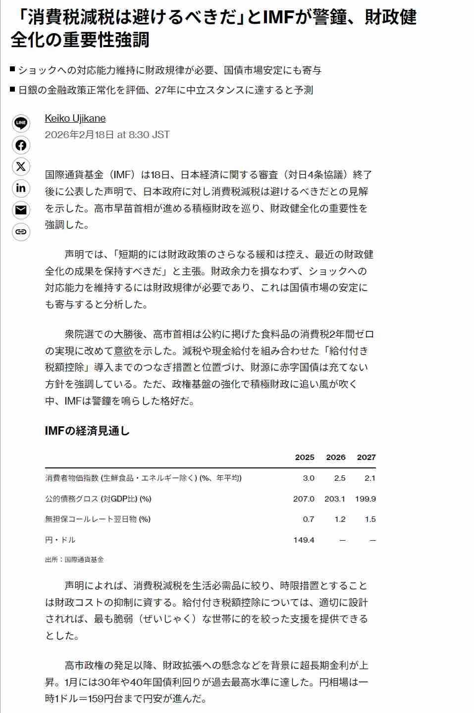 - IMFって消費税減税についてはごちゃごちゃ言ってくるくせに