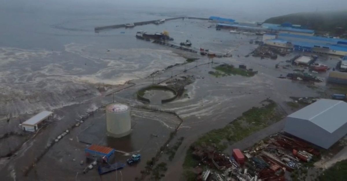 - >ロシア非常事態省はサハリン州セベロクリリスクの港と水産加工工場が津波で一部浸水したと明らかにした。