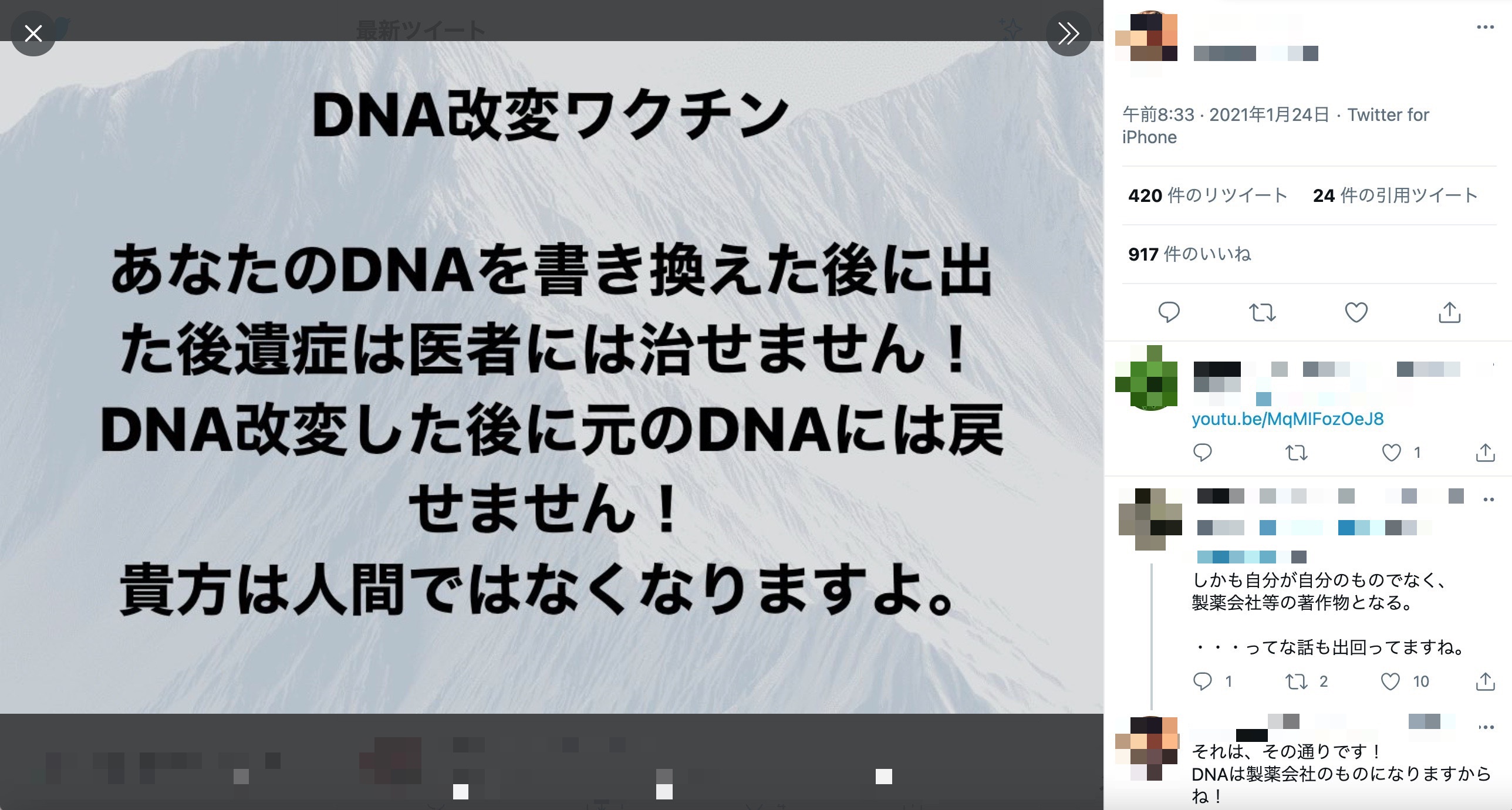 Q「ワクチンを打つとDNAが書き換えられ、著作権によって製薬会社の所有物になる」